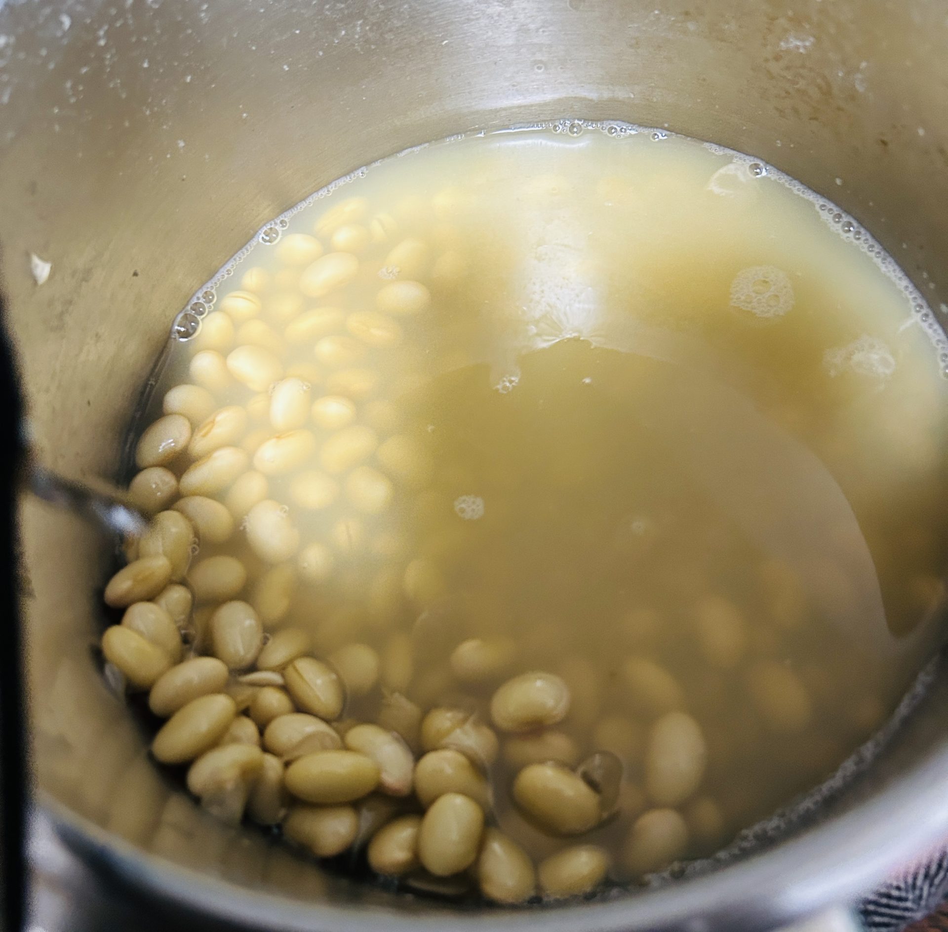 豆は皮をむいて口当たりを良くしたい。